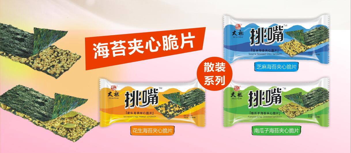本次春季糖酒會(huì),我們主推夏季商品:軟心綠豆糕和海苔夾心脆片。