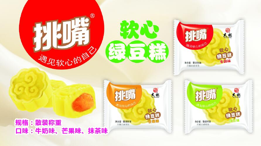 上海食品展上,除了我們?cè)械呐\執(zhí)?、海苔夾心脆片等產(chǎn)品之外,我們今年還主推主推散裝綠豆糕新品。